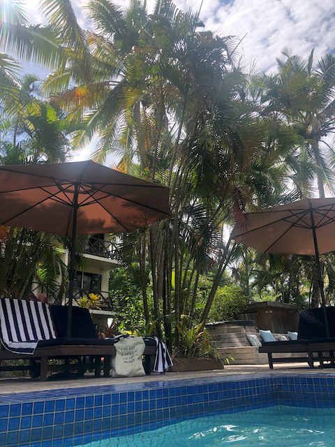 And so, after four and a half hours, we arrived in tropical heaven. Once our ferry was in reach of our island, a small boat from Blue Lagoon Beach Resort came to pick us up right in the middle of the ocean. We were greeted in the most Fijian way possible by resort staff: singing, playing music and happy to see us. The manager gave us a quick briefing of the island and off we were to our villa. Since it was Jens’s birthday he decided to give himself (and me!) a little upgrade. So bye bye regular room and bula (Fijian for hello) to our wonderful garden villa. Since we were staying on a small island there weren’t any other dining options than the resort’s restaurant but after our first lunch we didn’t mind at all. Food was delicious! Even so delicious that I followed a small cooking class to learn how to make the most famous local dish: kokoda. It’s a Fijian style ceviche made with fish, lemon, coconut milk, veggies and some coriander and chili. Yum! Can’t wait to make it myself at home. Once we get back home off course. Which is still a long way off. Just saying…