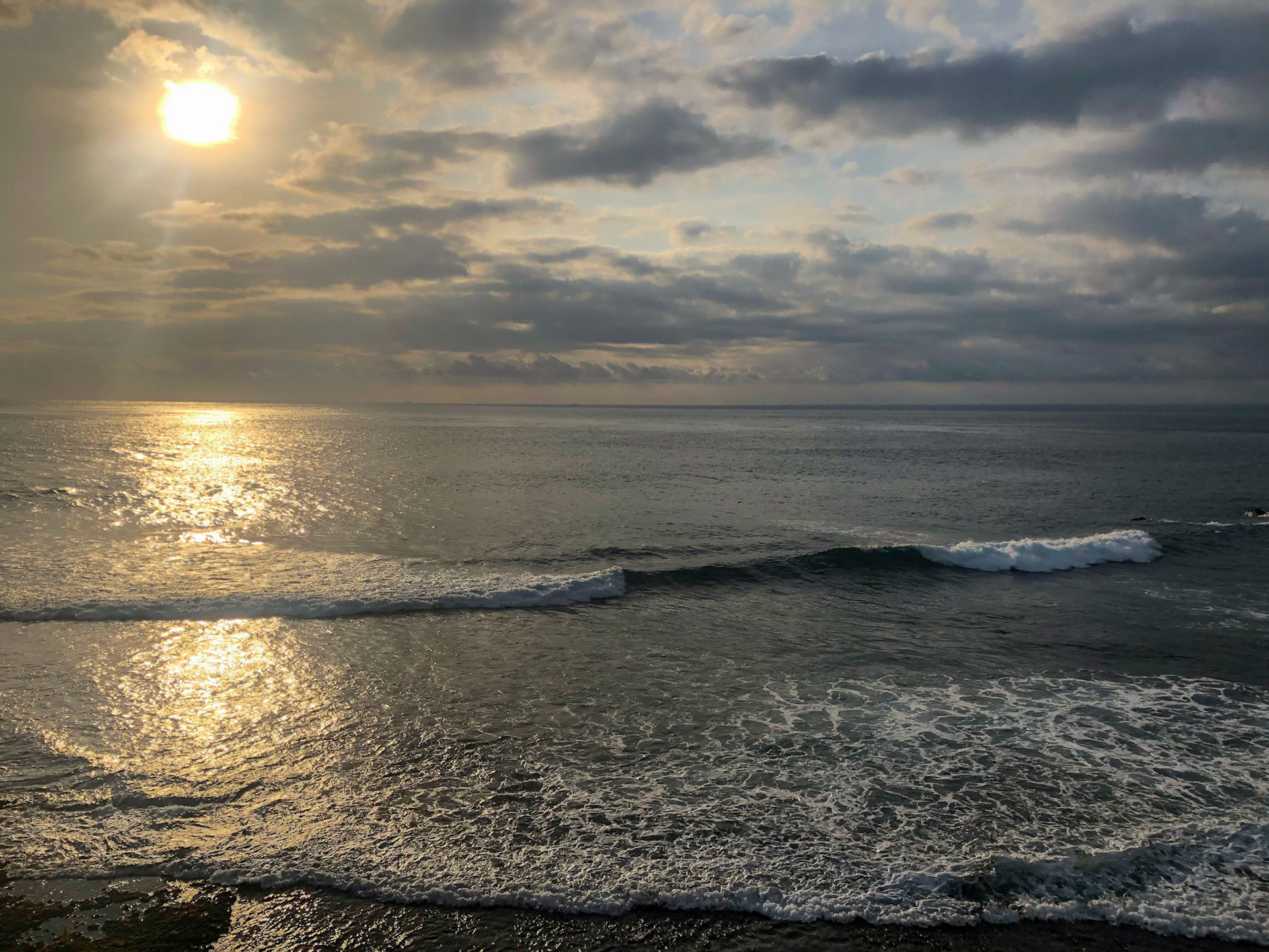 Our transfer from Gili Air to Nusa Lembongan we’d booked via the same website and thus via that same travel agency, which we were not really aware of. So, after another healthy breakfast we walked from our hotel towards the pier, a leisurely 20 minutes’ walk. Although, with our backpacks, it turned out to be a bit sweatier than anticipated. So drenched, we arrived at the check-in counter, where they had no record of us being on that boat. Say What?! So, it was only then that we figured out that we had chosen a wrong booking website… After some back and forth between us and the guy manning the counter and some strange phone calls, he pressed boarding passes and luggage tags in our hands and were sent off towards the pier. Laid back island-style customer service we assume. Once on board (now the same fast boat was able to dock at the pier instead offshore), we settled in our cramped seats for a fast one-and-a-half-hour ride towards Nusa Lembongan. At Nusa Lembongan, the fast boat moored on a pontoon and we had to transfer to a small craft (more like a small pontoon than anything seaworthy) and packed like sardines we transferred from the fast boat to shore. Which turned out to be another half-hour ride. We also arrived on the complete opposite of the island from where we thought we’d arrive. Again, due to our Google Maps-search, which showed us Nusa Lembongan fast boat pier, but not for the fast boat we took. So we were more or less forced to pay another 50,000 IDR per person to transfer(*) us to our accommodation: Kubu Dream Beach Resort. This would be our home for the next 4 nights.